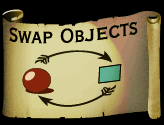 this script swaps position and size of the two objects.